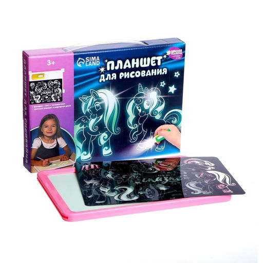 С помощью такой доски кроха сможет опробовать рисование светом. Для этого поместите планшет в тёмное место, удерживайте кнопку на маркере-фонарике и ведите его по поверхности. Ребёнок может использовать трафарет или придумать собственные сюжеты. Чем ближе вы держите маркер к планшету, тем ярче будет изображение.Если линии стали тусклыми, замените батарейки в фонарике. В комплекте три элемента питания типа AGW 1.5 V. Набор: Да. Возраст: От 3 лет. Тематика праздника: 8 Марта. Возраст: Детский. Типоразмер батареек: LR41 (AG3, LR736, SR41). Назначение: Для рисования светом. Назначение: Для рисования маркером, мелками. Тематика набора: Роспись, раскраска, рисование. Бесплатная доставка: Да. Наша разработка: Да.