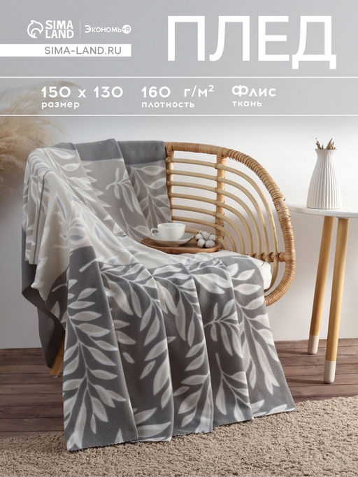• Плед флисовый «Экономь и Я. Листья», 150×130 см, плотность 160 г/м²