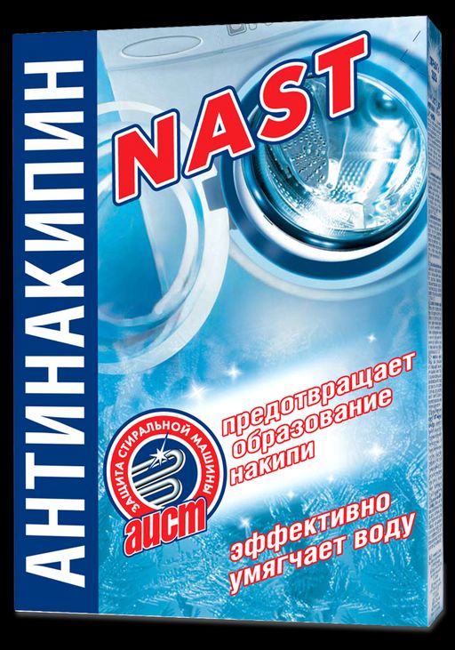 Внешний вид товара может отличаться от фотографий на сайте. Средство водосмягчающее "NAST"Антинакипин предназначено для предотвращения образования накипи на нагревательных элементах, металлических и пластмассовых частях стиральных машин и умягчения воды.