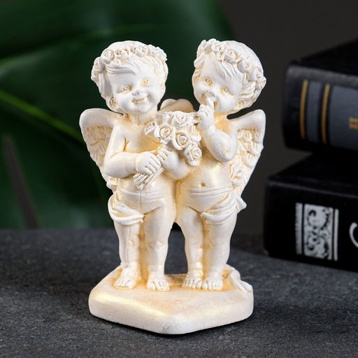 Фигурка гипс Ангелочки с букетом роз на сердце, позолота, 8.5?5.5?4 см