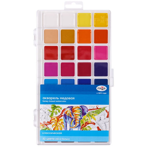 • Акварель ГАММА "Классическая" 32цв. пласт. уп., без кисти (1009199) медовая