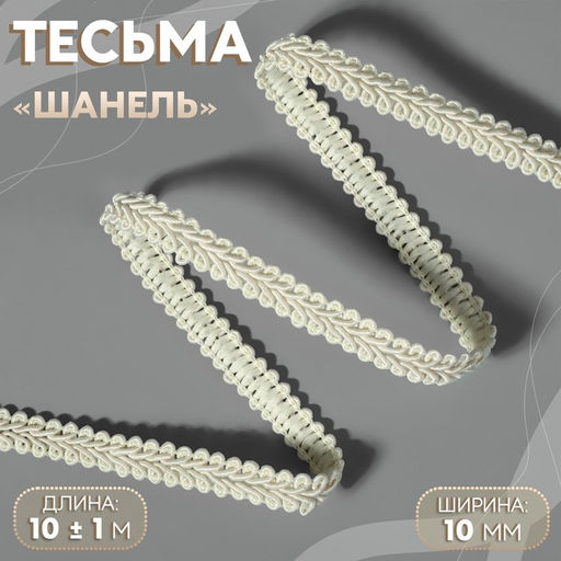 • Цена за 2 шт. Тесьма декоративная «Шанель», 10 мм, 10±1 м, бежевая