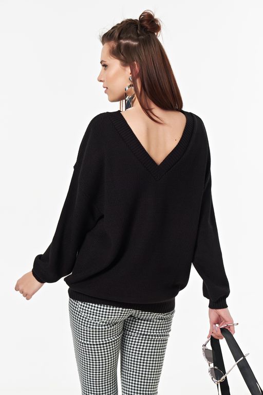 Джемпер вязаный свободный теплый с длинным рукавом черный