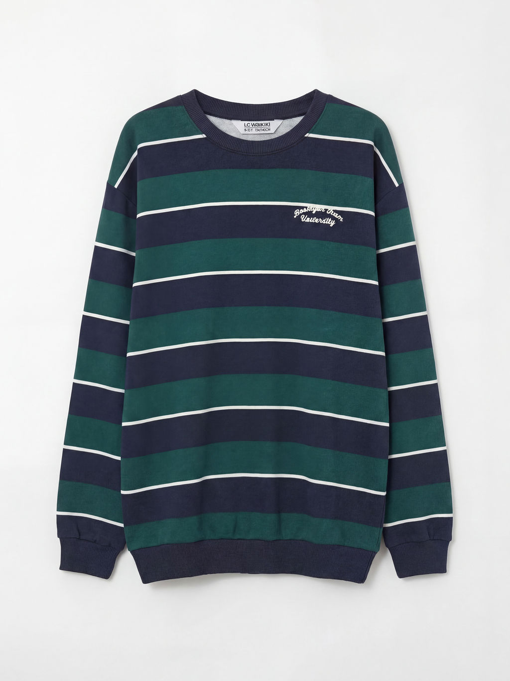Bisiklet Yaka ?izgili Erkek ?ocuk Sweatshirt