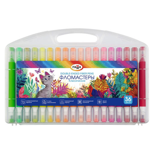 • Фломастеры ГАММА двухсторонние "Классические" 36цв. (26032025_360) суперсмываемые, в пласт. боксе