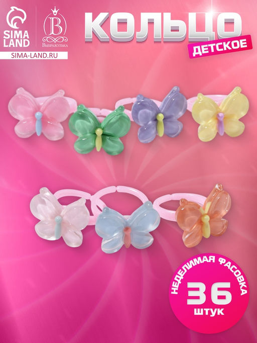 • Цена за 36 шт. Кольцо «Выбражулька. Нежная бабочка», безразмерное, МИКС