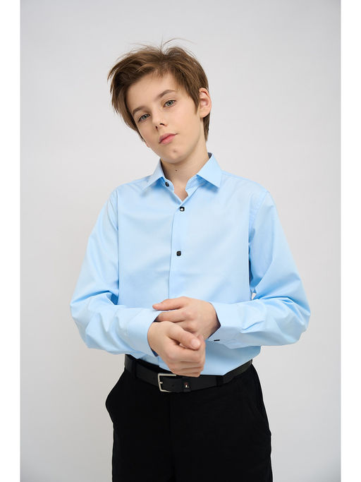 Классическая голубая сорочка на кнопках подойдет в школу, на праздник и на выпускной. Модель полуприлегающего силуэта с длинным рукавом. Сорочка выполнена из качественной ткани с высоким содержанием вискозы, что позволяет вашему ребенку чувствовать себя комфортно. Сорочка идеальна для гардероба как часть школьной формы, она идеально сочетается с классическими брюками. Широкий размерный ряд позволяет подобрать сорочку как для детей школьного возраста, так и для подростков. Стильня сорочка станет незаменимой вещью в гардеробе вашего сына. Состав:65% полиэстер, 35% вискоза