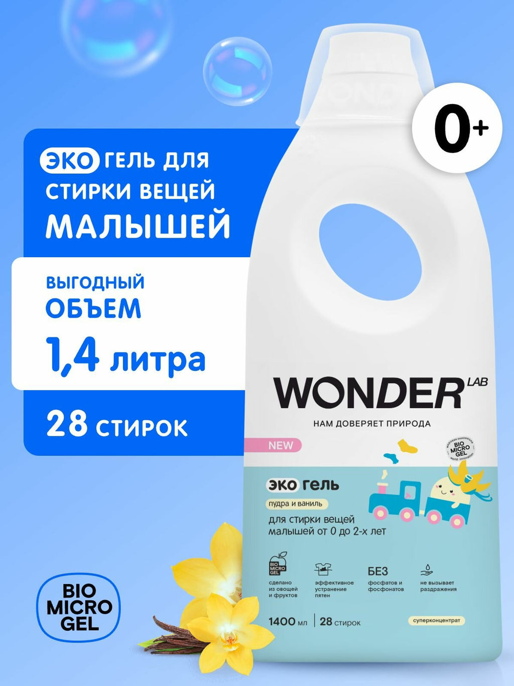 Гель для стирки вещей малышей от 0 до 2-х лет, Пудра и ваниль WONDER lab, 1400мл
