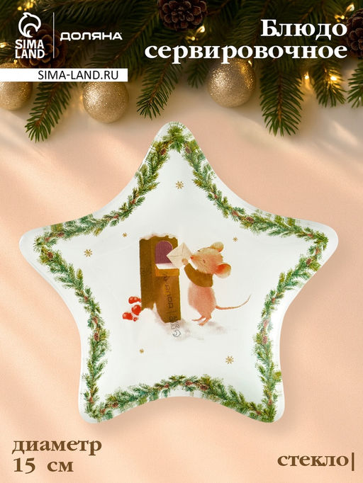 • Блюдо сервировочное новогоднее Доляна «Новогодние зверята», d=15 см, стекло, белое