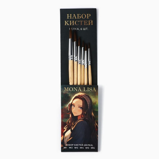 Кисть для рисования набор 6 шт. белка № 1,2,3,4,5,6 «Мона Лиза»