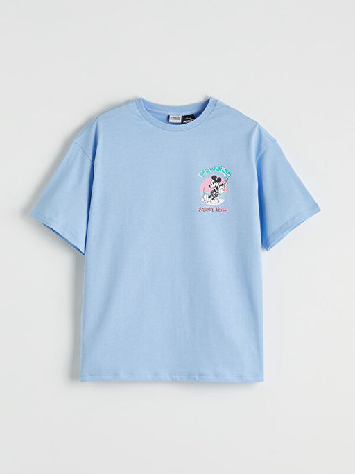 Bisiklet Yaka Mickey Mouse Bask?l? K?z ?ocuk Ti??rt