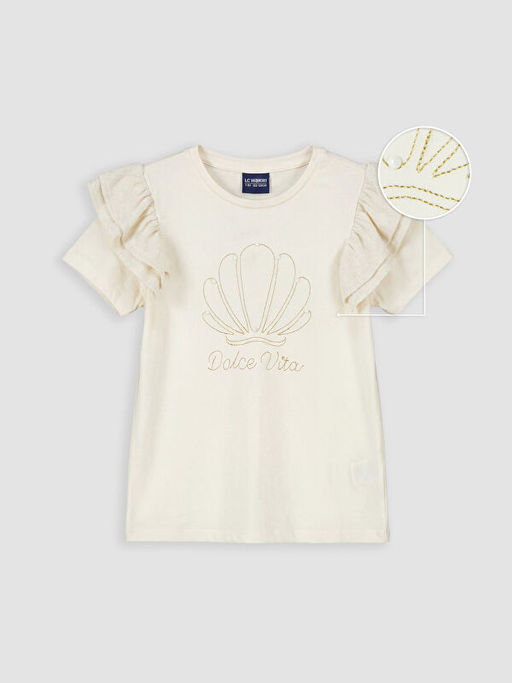 • Bisiklet Yaka Boncuklu K?z ?ocuk Ti??rt