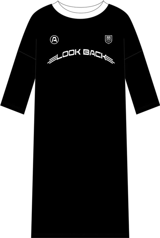 платье,хлопок 100%,кулир / хлопок 100%,черный+белый / - / Посмотри назад / - / - / -,Платье для девочки из кулира - легкого хлопкового полотна. Изделие со спущенным плечом, круглым вырезом горловины и рукавами длиной 2/3. На полочке и рукавах печать. Уход: только машинная стирка (руками не стирать!) при температуре 40 градусов, без предварительного замачивания. Изделия с печатью и декором перед стиркой необходимо вывернуть на изнаночную сторону.