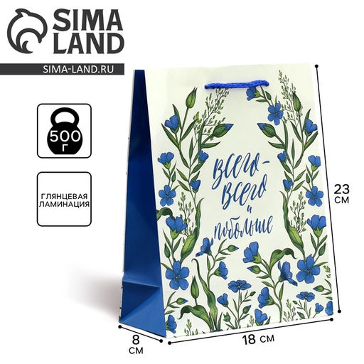 • Цена за 2 шт. Пакет подарочный ламинированный, упаковка, «Всего-всего», MS 18 х 23 х 8 см