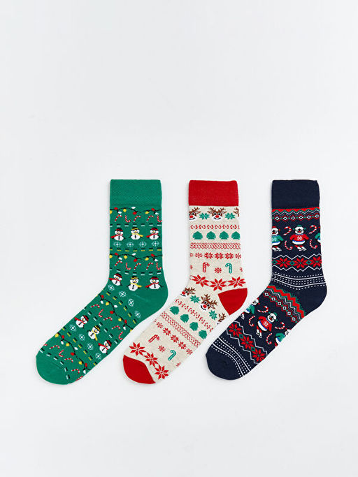 • Y?lba?? Temal? Desenli Erkek 3l? Soket ?orap
