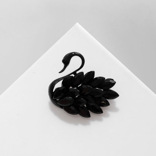 • Брошь «Птица», лебедь, чёрная в чёрном металле