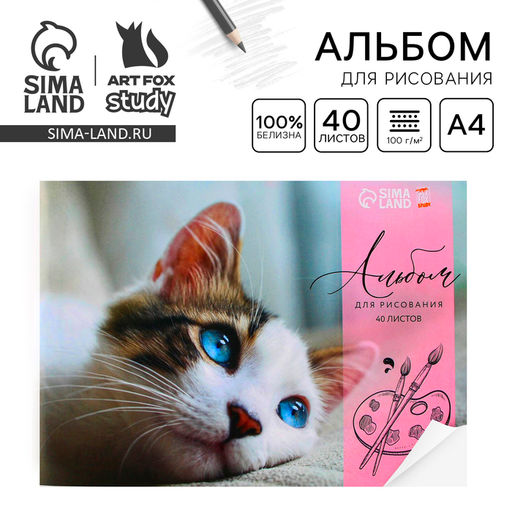 Цена за 2 шт. Альбом для рисования 40 листов А4 на скрепке «Котёнок» обложка 160 г/м², бумага 100 г/м².