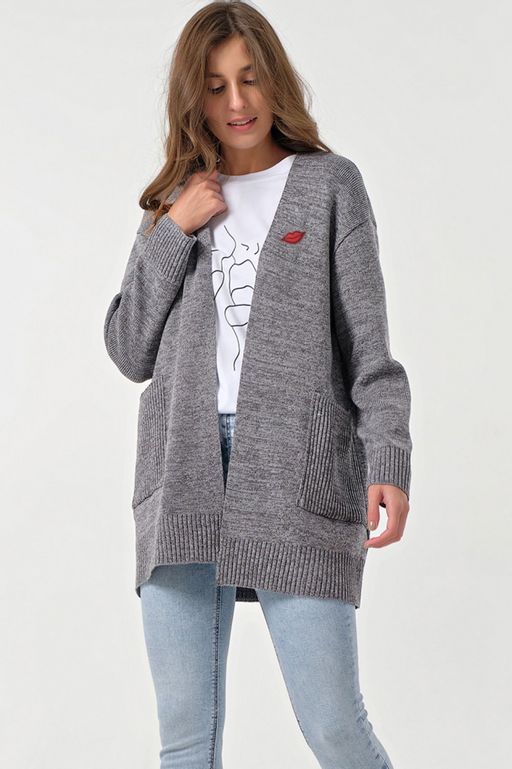 Кардиган вязаный оверсайз без застежки светло-серый