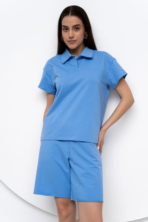 Невероятно комфортный, приятный к телу джемпер. Изделие прямого силуэта с воротником-поло из мягкого шелковистого футера. Рукава короткие, спущенная линия плеч. Ее удобно заправлять и носить навыпуск, отлично сочетается с простыми и ультрамодными низами. За счёт прямого кроя, она одинаково стильно смотрится на разных типах фигуры. Этот джемпер станет идеальным дополнением вашего гардероба. Обращаем внимание, что цвет изделия может немного отличаться от оттенка, представленного на фотографиях. Длина изделия: 42 размер 60 см. 44 размер 60 см. 46 размер 62 см. 48 размер 62 см. 50 размер 64 см. 52 размер 64 см. 54 размер 65 см.