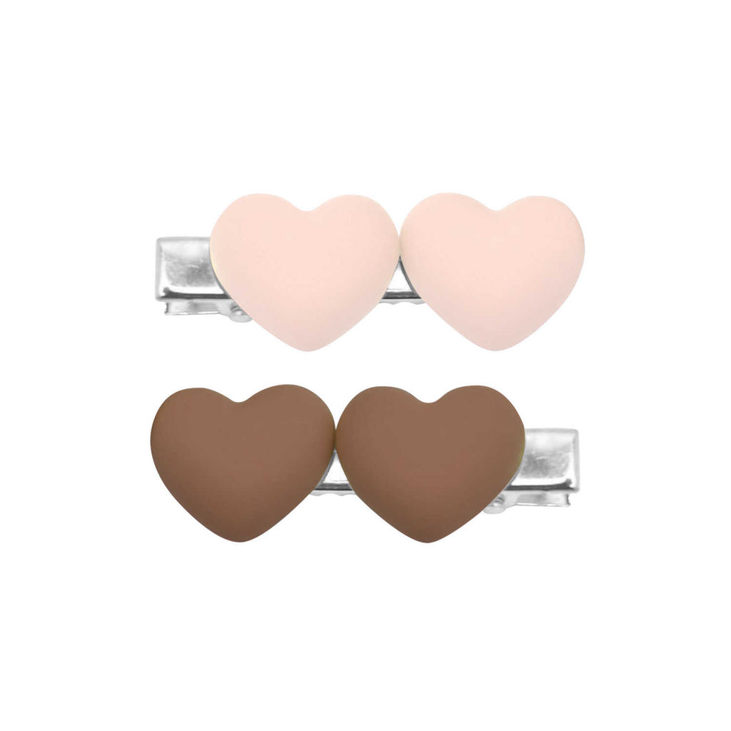 Набор заколок для волос «зажим», арт. 71783 / 10 СЕРДЕЧКИ (в наборе: 2шт., 4 см, черный металл, полиметилметакрилат, цвет: коричневый, молочный, подложка из мелованного картона + ПЭТ-пакет с европодвесом)