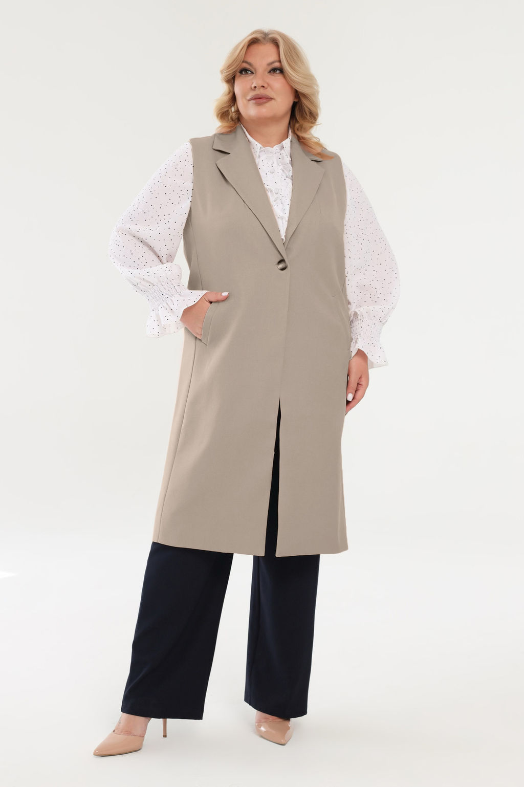 Жилет с удлиненным силуэтом и одной пуговицей бежевый