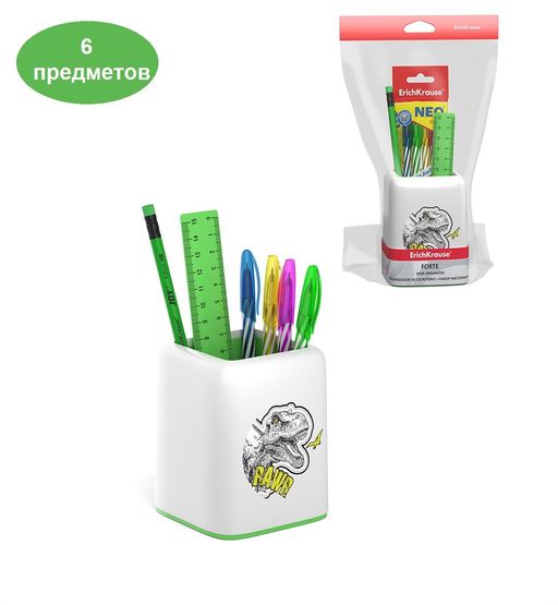 • Канц. набор ErichKrause "Forte. Dinosaur Park" 6 предм.,(55739) белый с зеленой вставкой