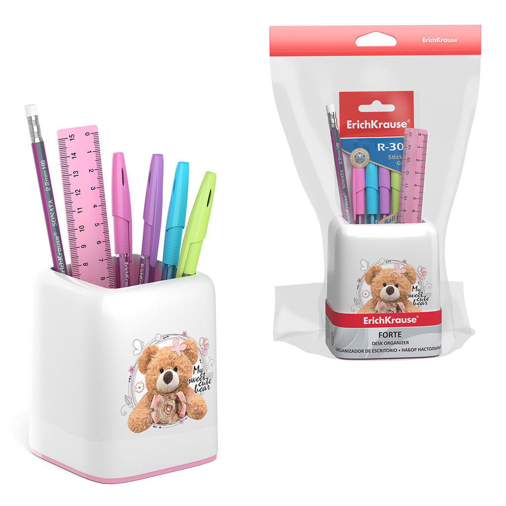 АКЦИЯ Цена за 1 шт. Набор настольный пластиковый ErichKrause® Forte, Teddy Bear, белый с розовой вставкой