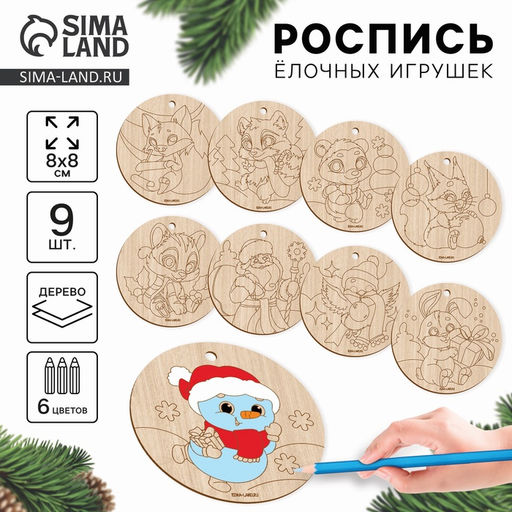 С набором для росписи по дереву у вас получится смастерить новогодний декор.Особенности набора для росписиОснова сделана из экологичного материала — дерева.Покройте заготовки краской и дождитесь высыхания.ППроденьте ленточку в отверстие и украсьте ёлку!Чем полезны занятия с наборомРоспись по дереву является понятным и расслабляющим занятием, подходящим как для взрослых, так и для детей. Занимаясь росписью, вы тренируете воображение, мелкую моторику рук и развиваете творческие способности и эстетический интеллект. Набор: Да. Размер, см: 8 х 8. Возраст: От 3 лет. Тематика: Новогодняя. Символ года: Нет. Тематика праздника: Новый год. Вид: По дереву. Для создания: Набор для декорирования. Составляющие набора: Товары для творчества. Возраст: Для детей. Вид заготовки: Ёлочное украшение. Комплектация набора: С карандашами. Бесплатная доставка: Да. Наша разработка: Да.