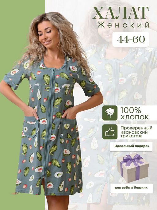 Артикул: Халат женский, модель 124,трикотаж (44 размер, Авокадо)