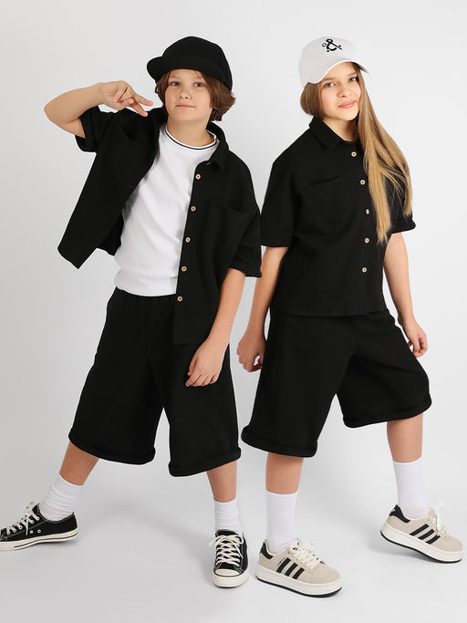 Летний детский костюм Соль&Перец, выполнен из натурального хлопкового вафельного трикотажа. Рубашка свободного кроя с потайными карманами на груди, удлинённые шорты с карманами, по талии на широкой, эластичной резинке. Костюм из хлопковой ткани вафельной текстуры хорошо пропускает воздух, защищает от солнца и подходит для чувствительной кожи. Отличный вариант для летнего отдыха.