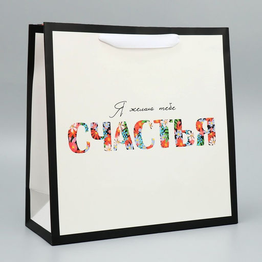• Пакет подарочный ламинированный квадратный, упаковка Счастье, 30?30?12 см