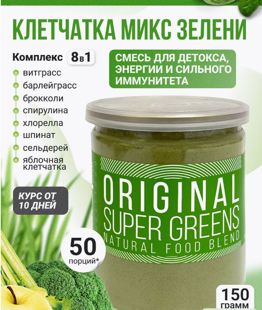Откройте для себя мир здоровья и энергии с суперфудом ORIGINAL SUPER GREENS. Витаминный порошок - микс витграсса, барлейграсса, брокколи, шпината, сельдерея, яблочной клетчатки, спирулины и хлореллы. Мощный антиоксидант верный помощник в сезон простуд и ОРВИ.