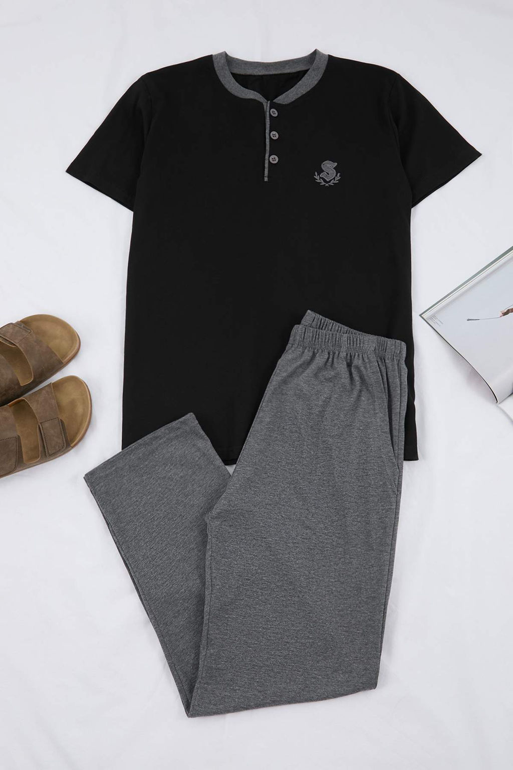 Siyah Regular Dugmeli Yaka Orme Buyuk Beden Pijama Tak?m? TMNSS26AI00010