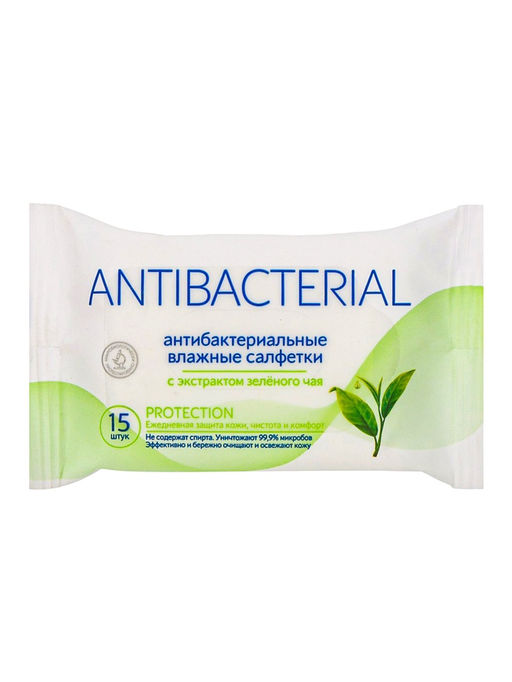 • Цена за 10 шт. Влажные салфетки антибактериальные, с экстрактом зелёного чая, 15 шт.
