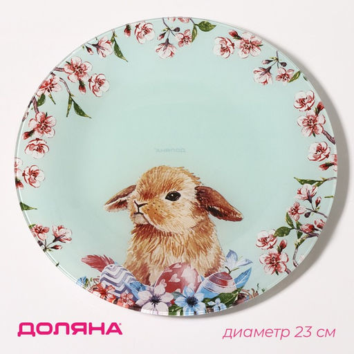 • Тарелка стеклянная Доляна «Кролик», d=23 см, цвет голубой