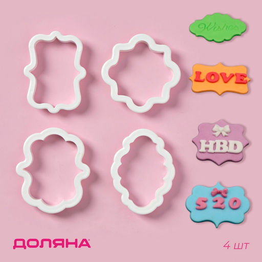 • Формы для печенья Доляна «Рамки», набор 4 шт.: 9×7.5 / 8.7×6.6 / 8×9 / 8.5×6.5 см, пластик, белые