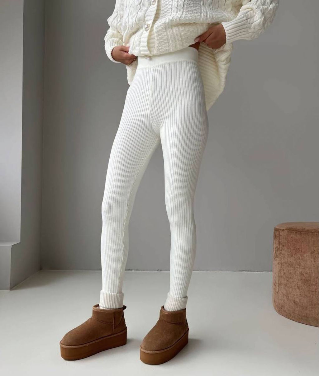 • K11035 Легинсы в рубчик (вязаный трикотаж) БЕЛЫЙ