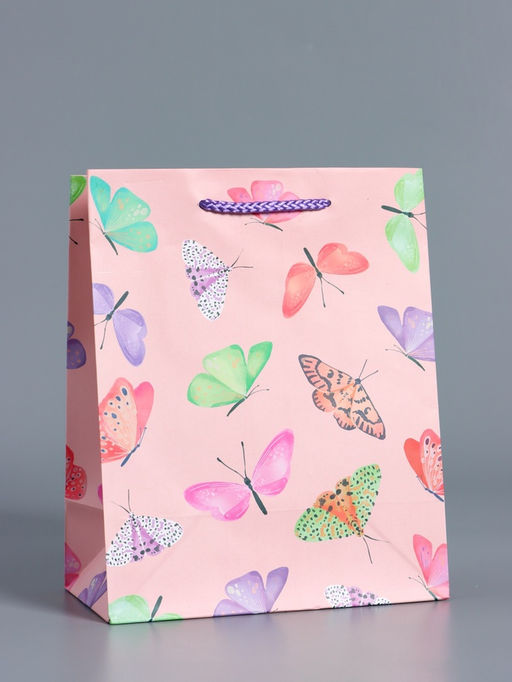 • Пакет подарочный ламинированный «Крылья счастья», розовый, 18×22.3×10 см