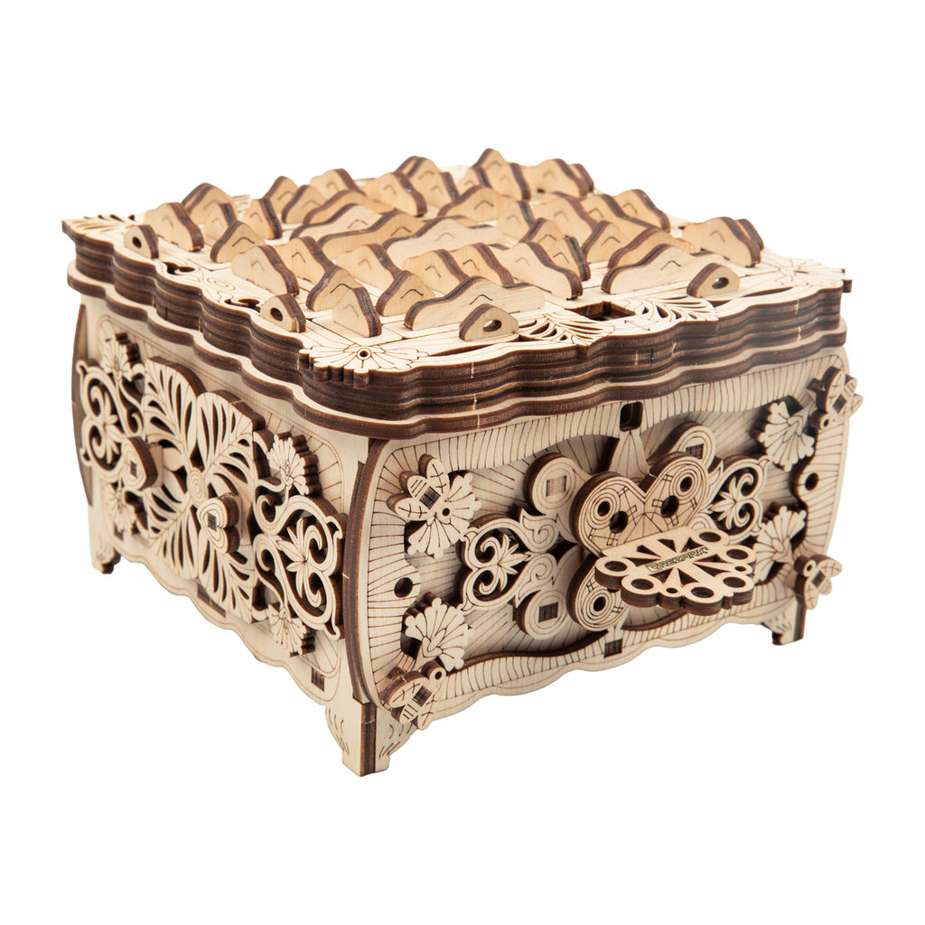 Описание Торговая марка REZARK представляет взрослую механическую серию наборов для сборки 3D-пазлов. Пазлы представляют собой небольшие сборные 3D модели из плоских фанерных деталей. Для сборки моделей не требуется клей или клеевые материалы. Детали пазлов фиксируются между собой с помощью пазов. Толщина фанеры 4 мм. В набор входит пошаговая инструкция на русском языке, воск. Рекомендуемый возраст: 8+ Шкатулка или головоломка? И то, и другое вместе! Шкатулку с секретом нельзя открыть просто так, а только хитрым способом: например, нажав определенное место, сдвинув какую-то часть или выполнив какую-то последовательность действий. Считается, что первые шкатулки-головоломки появились в Японии. Сначала в них держали бытовые мелочи, и лишь позже деньги, документы и ценности. Интересно, что в XIX веке какое-то время в них прятали спички. Из-за содержания белого фосфора первые спички очень легко воспламенялись, и потому их хранили с особой осторожностью. В наши дни шкатулки-головоломки прежде всего предмет коллекционирования. Но если у вас есть какая-то тайна, можете смело доверить ее этому ларчику. Замочек откроется только после решения головоломки на крышке, а это не каждому под силу. Проверите себя?ОбязательныйОбязательныйИнструкция (PDF)