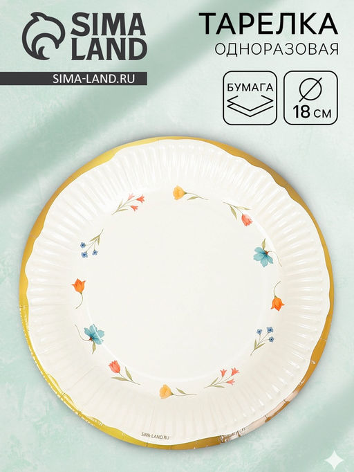 • Цена за 10 шт. Тарелка одноразовая бумажная Керамика с цветами, 18 см