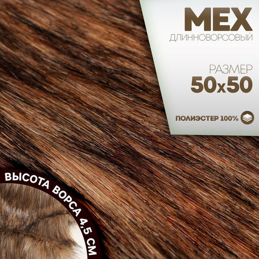Ткань для рукоделия, мех длинноворсовой на трикотажной основе, цвет меланж, лоскут 50×50 см