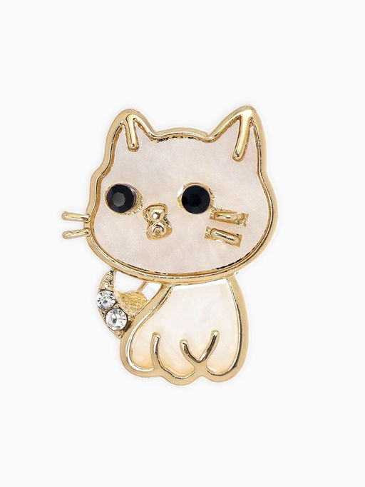 Брошь перламутровый "Котёнок", цвет белый в золоте