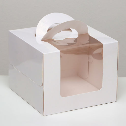 • Коробка под бенто - торт с окном, белая, 18×18×14 см
