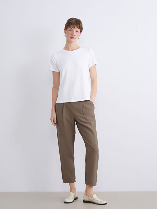 • Y?ksek Bel Havu? Kesim Kad?n Pileli Pantolon