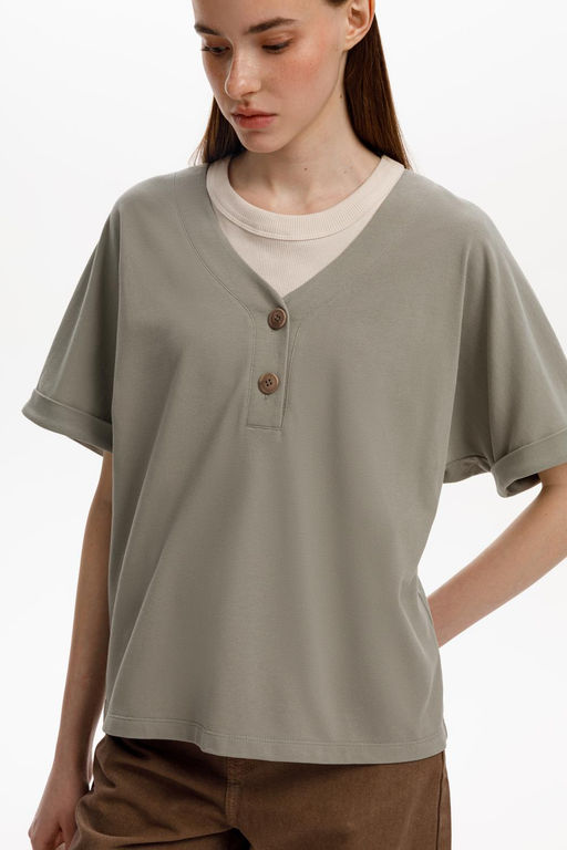 Трикотажная футболка с удлиненными рукавами изготовлена из легкого хлопка с рельефной текстурой пике. Широкие манжеты и V-вырез с пуговицами в тон изделия позволяют сочетать ее как с классическими, так и с более спортивными стилями.. Состав: 100% хлопок