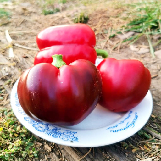 Селекции Помидома. Перец с фиолетовым бочком, словно его уже сняли с барбекюшной решётки . Форма от бочковидной до немного сплюснутой звёздчатой. Ранний. Толстостенный. Невысокий, около 60-80 сантиметров высотой. Для украшения стола и всех видов переработки. Эффектно смотрится маринованным в банках, как-будто действительно подрумяненный на огне.