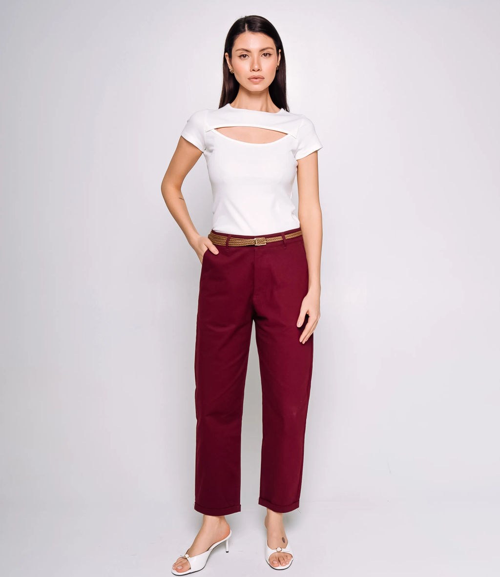 Брюки это важная часть гардероба, которая подчеркивает утонченность и профессионализм каждой женщины. Брюки выполнены из плотного гладкого материала средней плотности с лёгким структурированным блеском, имеют прямой силуэт с высокой талией и классической посадкой, передняя часть оформлена плоской ширинкой с центральным швом и скрытой застёжкой, талия оснащена шлевками для ремня и тонким декоративным ремнём с металлической пряжкой. Для пошива использована ткань: 97% хлопок, 3% эластан. Материал средней плотности хорошо держит форму, обладает приятной на ощупь структурой и обеспечивает комфорт при носке. Даже после многократных стирок изделие не утратит первоначальной аккуратности и цвета, что важно для поддержания высокого уровня продаж в рознице. Обратите внимание на насыщенные оттенки: цвет соответствует фотографии на сайте. Модель имеет два боковых кармана и декоративные швы, подчеркивающие структуру изделия. Для уверенности в размере на странице представлена таблица, с помощью которой можно самостоятельно снять мерки и подобрать нужный размер. Мы предлагаем выгодные оптовые условия, гибкую ценовую политику и стабильные поставки для ваших магазинов. Цена установлена адекватная, что позволит вам формировать привлекательную наценку и обеспечивать высокую оборотность. Подарите своим клиенткам изделие, которое сочетает в себе стиль, комфорт и надежное качество. -- Характеристики -- Цвет: бордовый Пол: Женский Страна производитель: Китай Сезон: Демисезон Материал: Хлопок, Эластан