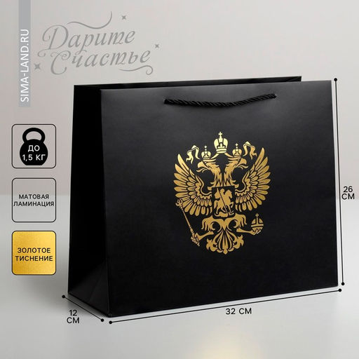 • Цена за 2 шт. Пакет подарочный, упаковка, «Герб России», 32 х 26 х 12 см