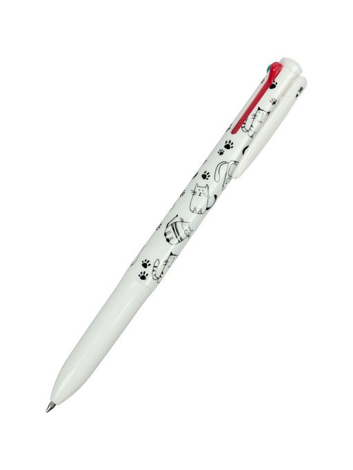 • Набор шариковых ручек, 3 штуки, автоматические, 4-цветные, белый корпус, с рисунком