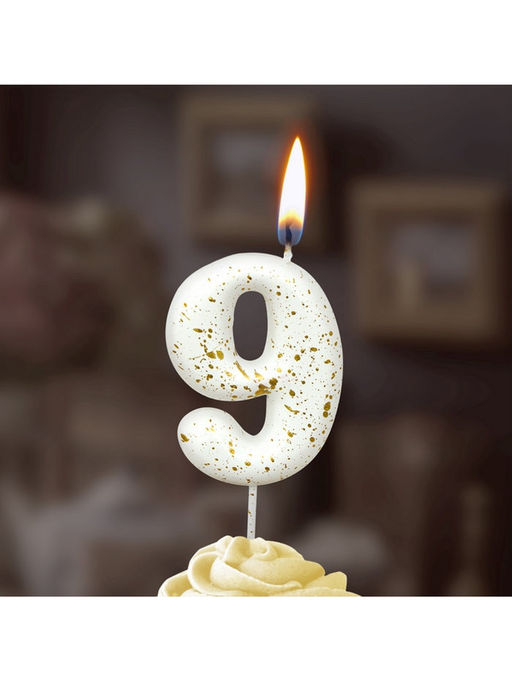 Цена за 2 шт. Свеча в торт «Белые брызги», цифра 9